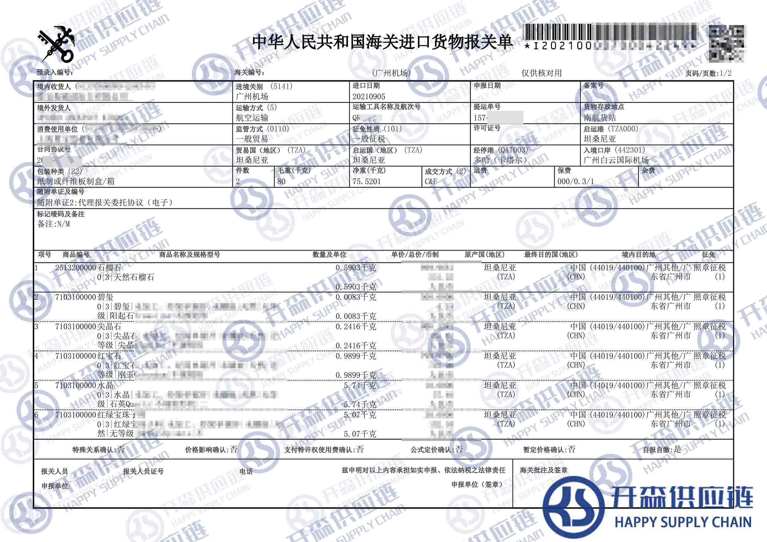 一、坦桑尼亞寶石進(jìn)口報(bào)關(guān)代理案例詳情