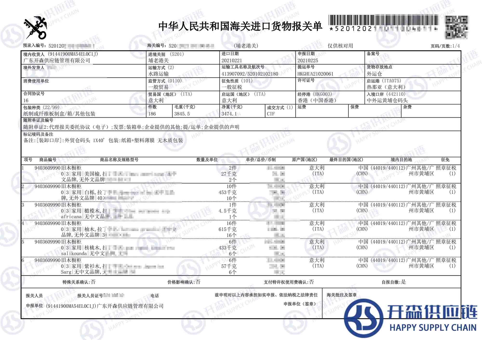 上述就是意大利舊木櫥柜家具進口報關(guān)代理案例【進口案例】的全部內(nèi)容,希望能對您有所幫助,如有二手家具進口報關(guān)上任何疑問及問題可隨時在線聯(lián)系我們或撥打 18002611553,開森供應(yīng)鏈擁有豐富的二手家具進口報關(guān)操作經(jīng)驗及案例,10余年進口經(jīng)驗為您所用,各類進口疑難都能為您一一解答及協(xié)助快速處理解決!