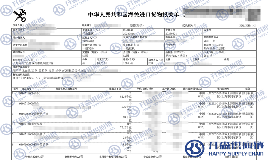 一、法國家具沙發(fā)進(jìn)口報關(guān)代理案例詳情