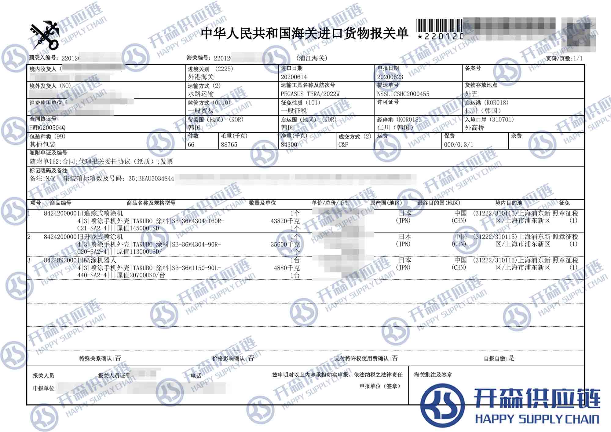 一、舊追蹤式噴涂機(jī)進(jìn)口報(bào)關(guān)代理案例詳情