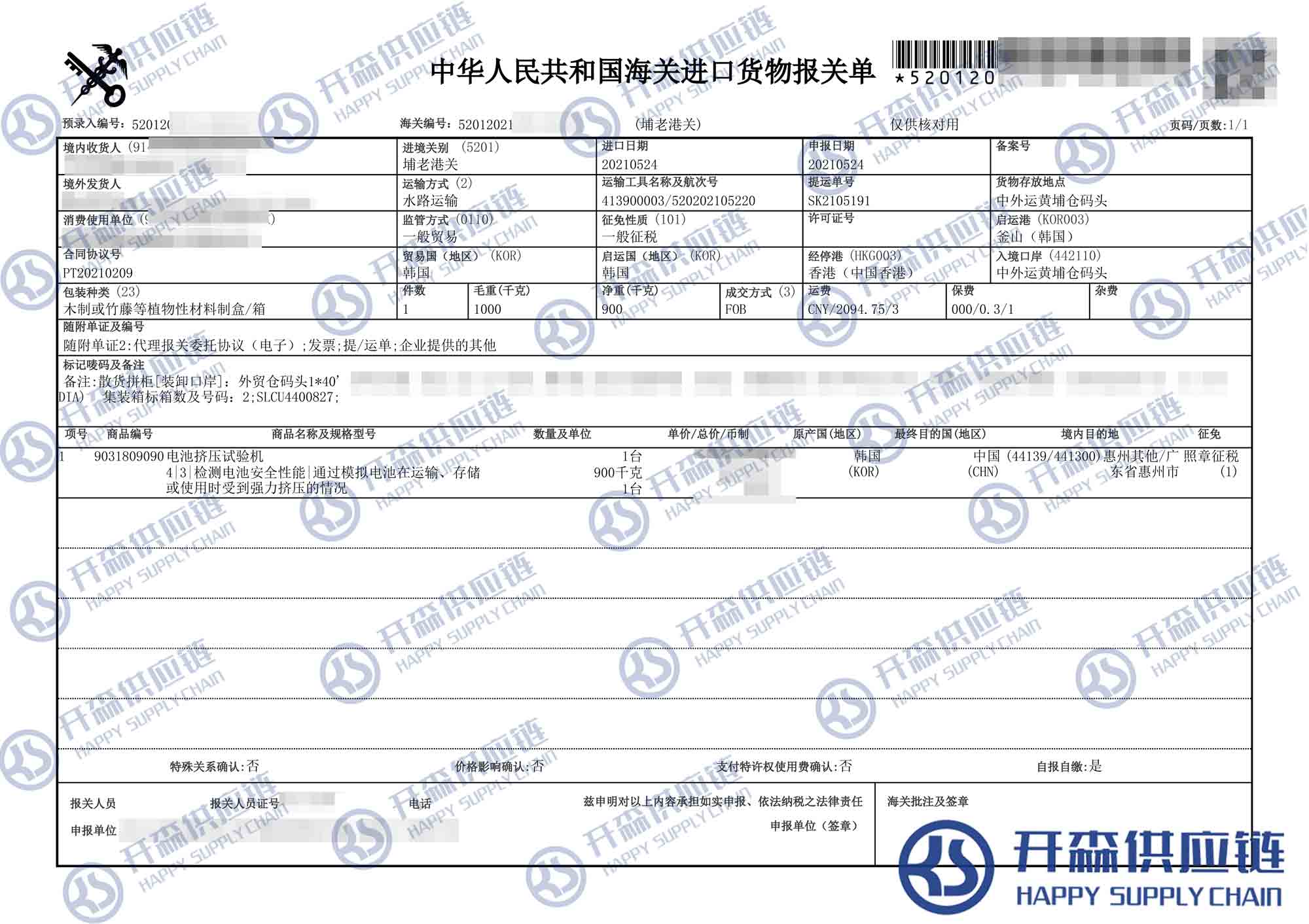 韓國電池擠壓試驗機(jī)進(jìn)口報關(guān)代理服務(wù)【進(jìn)口案例】