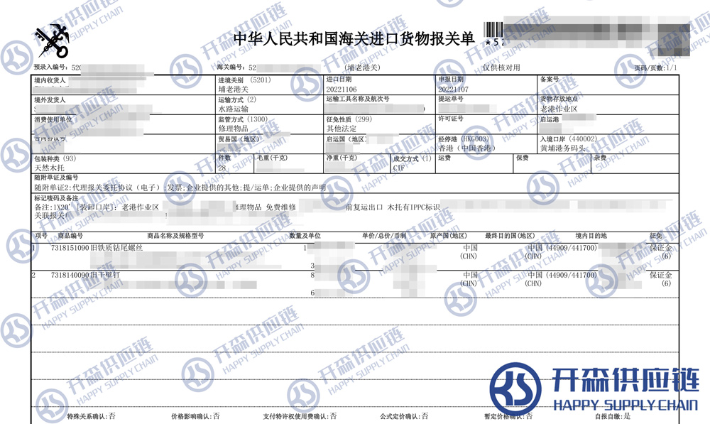 一、舊干壁釘退運返修進口報關(guān)代理案例詳情